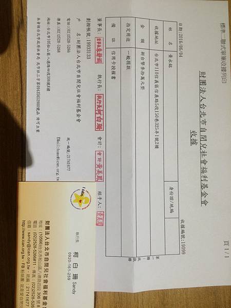 上午和你通完電話,簡單了解狀況後,我和語嫣便去「財團法人台北市自閉兒基金會」捐給他們三十萬了。